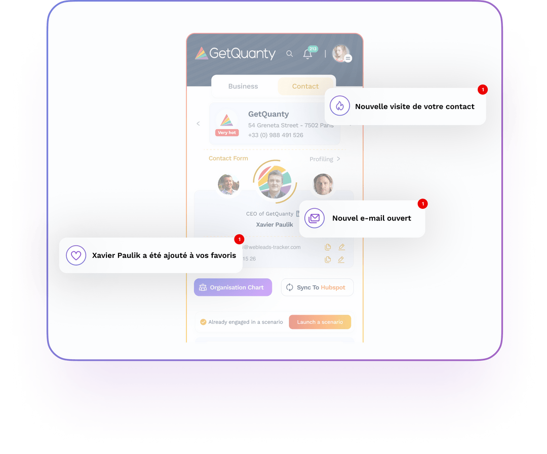 Vous découvrirez les multiples intégrations avec vos outils Sales & Marketing et comment GetQuanty vous aidera à engager vos prospects au bon moment et depuis n’importe où sur le web.